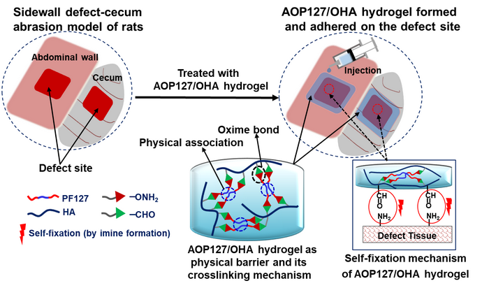 圖3 具有組織黏附性的雙交聯水凝膠,可作為物理屏障起到防腹腔組織粘連作用。