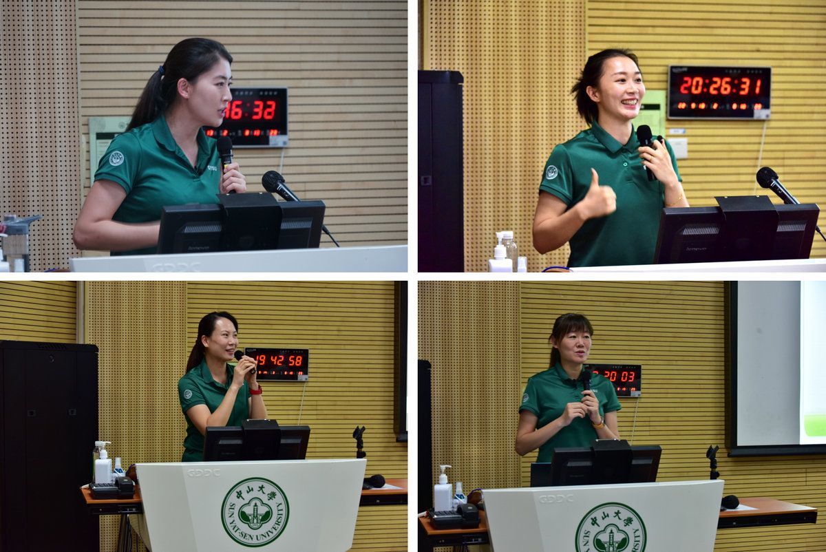在奧運冠軍們精彩分享之后,張新萍教授為同學們介紹了中大體育的基本概況,詳細講解了中山大學體育課程方案,并對體育場館及預約使用方法、體育部群體活動及運動隊建設等逐一介紹,希望同學們對大學四年體育發展認真規劃,加強體育鍛煉,強健體魄,勇于擔當。
