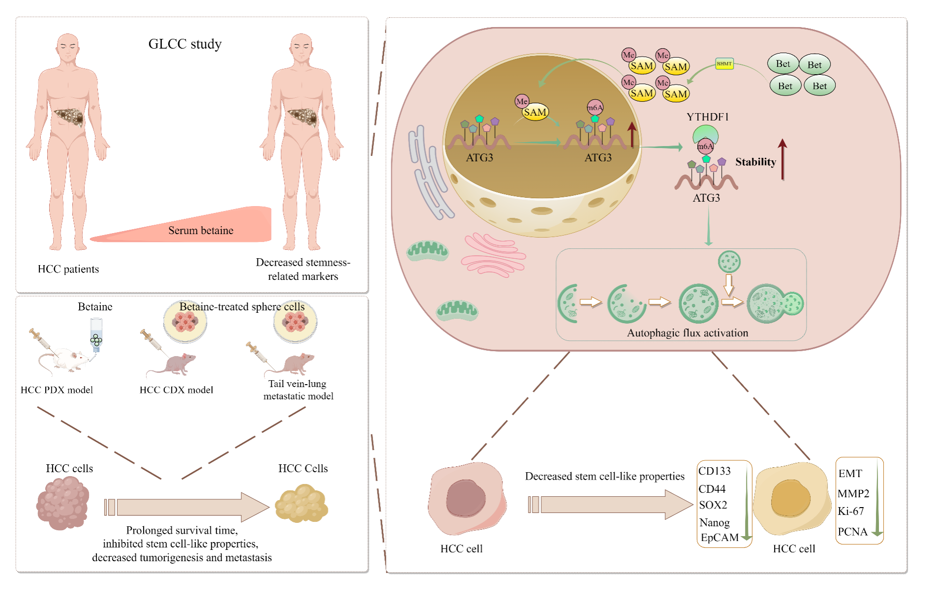 論文鏈接:Betaine inhibits the stem cell-like properties of hepatocellular carcinoma by activating autophagy via SAM/m6A/YTHDF1-mediated enhancement on ATG3 stability - PubMed