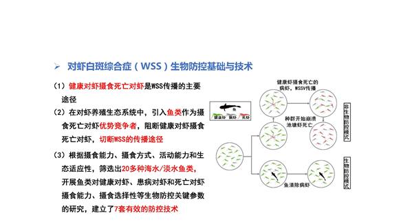 對蝦白班綜合癥(WSS)生物防控技術(來源:生命科學學院)