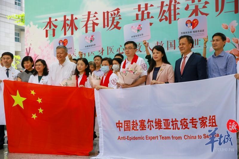 5月2日下午,中山大學(xué)附屬一院再派出3名專家接力援助塞爾維亞并舉行歡送儀式 羊城晚報記者 宋金峪攝