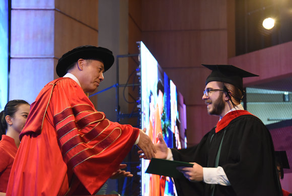 歷史系本科畢業生周同學從主禮臺上走下來的時候還很激動,因為她忘記做一件每個畢業生都特別期待的事情——與校長握手。“校長把手都伸出來了,我卻直接走下來了!”她懊悔地說,“等我碩士畢業的時候,一定要和校長握兩次手!”