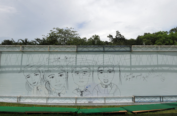 嘉年華上豎起的兩面留言墻,總是早早地就被畢業(yè)生們寫滿。他們或署名、或無名,橫斜錯(cuò)落的方塊字,凝聚著強(qiáng)烈的感情。