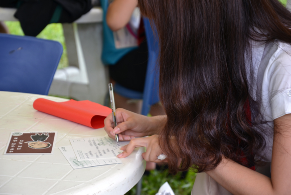 管理學(xué)院的碩士畢業(yè)生黃健剛和他的女朋友,寫下了各自的愛情私語,封藏進(jìn)時(shí)光囊。黃健剛幸福地說:“今天女朋友特別請了一天的假來參加我的畢業(yè)典禮,天氣熱,蚊子又多,非常感謝她的付出!”