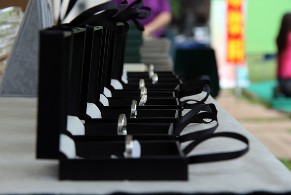 今年的畢業(yè)嘉年華提供了將這色彩收進(jìn)時(shí)光囊的服務(wù),五年以后,當(dāng)兩人歸來之時(shí),看到當(dāng)年寫下的字句,豈不是浪漫非常?今年的愛情時(shí)光囊還有特別的設(shè)計(jì),就是將鑰匙設(shè)計(jì)成心形,分成左右兩半,一對情侶各自保留鑰匙的一半。