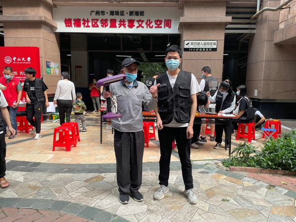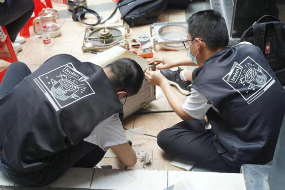 “這里是不是維修啊?那我趕緊上樓拿點(diǎn)東西!”銀禧社區(qū)鄰里共享文化空間里吸引了一大批居民前來,與其他攤位點(diǎn)不同的是,這里圍繞著的居民都是手提電風(fēng)扇、電飯煲、臺(tái)燈……一起圍看中山大學(xué)物理學(xué)院的學(xué)子們“大展身手”。