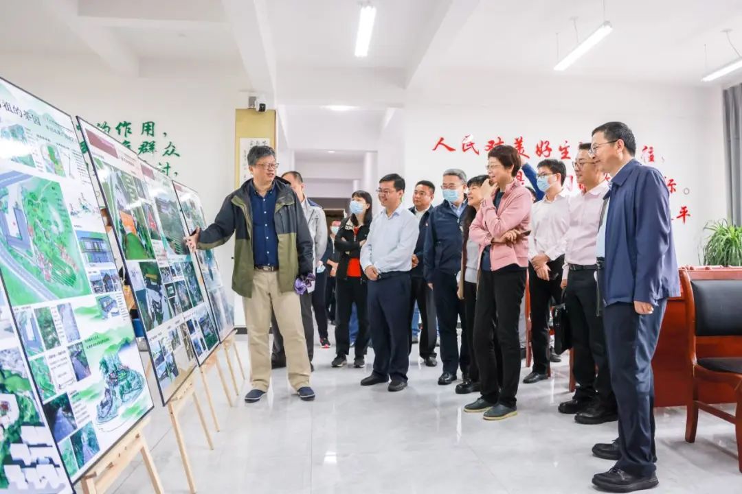 李郇教授(左)介紹以紅塘村為樣板的教育部鄉村振興創新培育試驗項目的進展情況