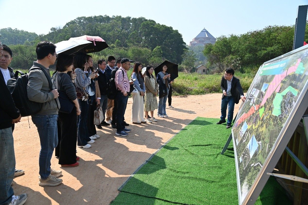 農業與生物技術學院院長助理陳景光現場介紹基地建設及規劃情況