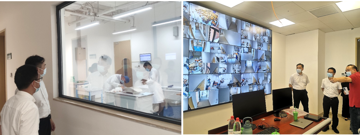 醫(yī)學(xué)院黨委書(shū)記丁小球、副院長(zhǎng)湯地巡視考場(chǎng)和中控室(來(lái)源:醫(yī)學(xué)院)