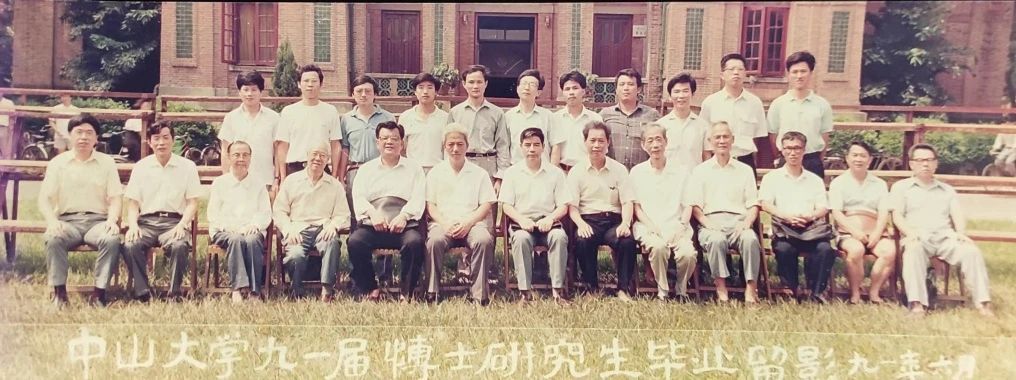 作者博士論文答辯會,從左到右分別為李錦全教授、曹礎基教授、蕭萐父教授(主席)、吳熙釗教授、姜伯勤教授(1991年6月15日)