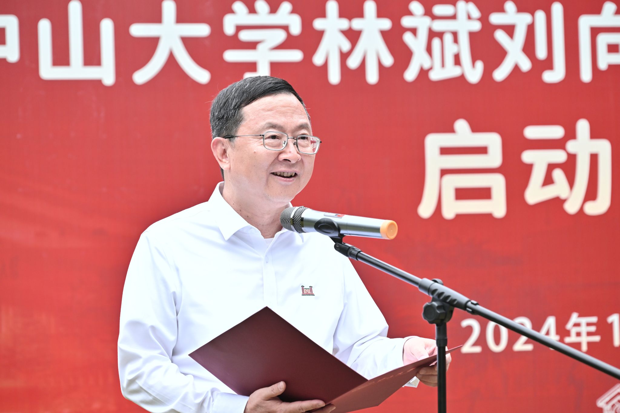 中山大學(xué)黨委書記朱孔軍,校長高松院士,黨委副書記、紀(jì)委書記刁振強,副校長楊東華,副校長謝湜,丘海明老師及學(xué)校部分職能部門負責(zé)人、師生代表現(xiàn)場觀禮,活動由謝湜副校長主持。