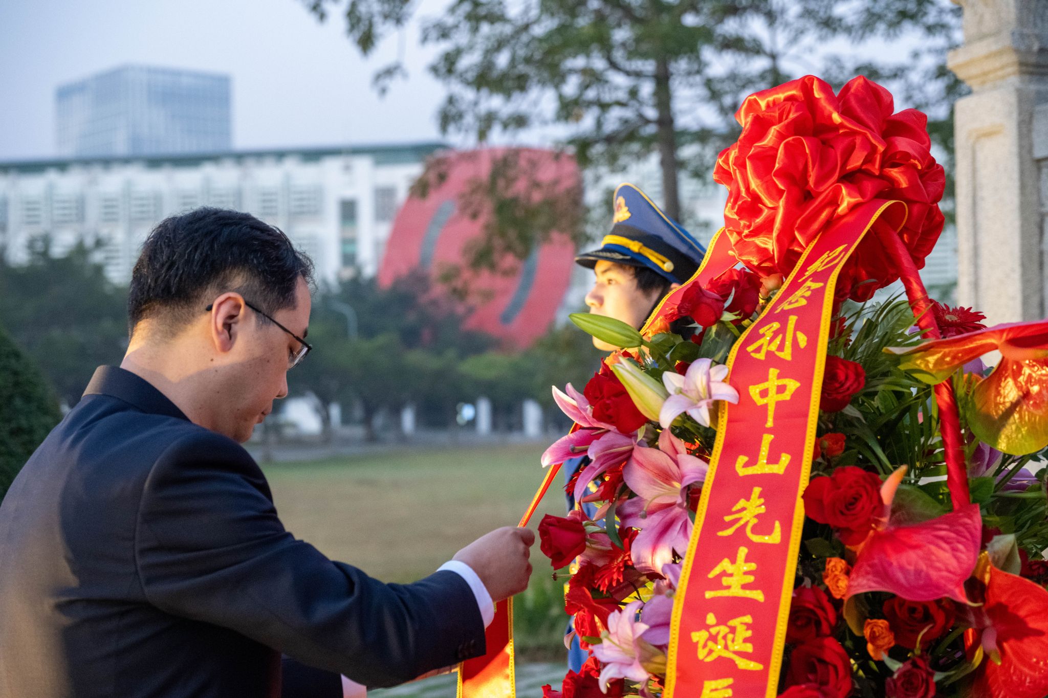 校黨委書記朱孔軍、校長高松,校黨委副書記張琪,副校長劉濟科,副校長鄭躍,副校長邰忠智分別在五個校區(園)主禮獻花儀式,向孫中山先生致敬,為中山大學慶生。學校黨委副書記國亞萍,醫學部綜合管理處處長龍波,東校園管理委員會李明章主任,珠海校區管理委員會劉梅主任,深圳校區管委會溫光浩常務副主任分別主持了廣州校區南校園、北校園、東校園,珠海校區和深圳校區的儀式。學校全體校領導,各職能部門、院系及附屬單位負責人和師生代表參加儀式。