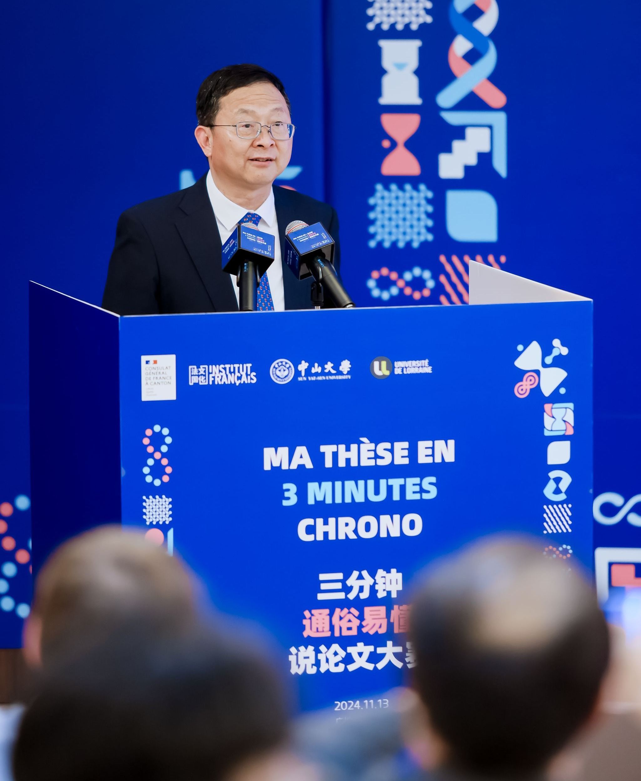 中山大學(xué)校長(zhǎng)高松院士向到場(chǎng)的嘉賓致以誠摯問候。高松校長(zhǎng)指出,今年是中法建交60周年,同為文化大國的中法兩國間的人文交流和教育交流具有重要意義。百年來,中山大學(xué)作為中法文明交流互鑒的見證者、參與者、研究者、推動(dòng)者,始終是推動(dòng)中法兩國國相交、民相親的重要力量。在下一個(gè)百年的新征程,中山大學(xué)將繼續(xù)加強(qiáng)對(duì)外合作交流,提升國際化辦學(xué)實(shí)力,為中法教育交流“雙向奔赴”貢獻(xiàn)更多中大力量。高松校長(zhǎng)表示,“三分鐘通俗易懂說論文”大賽是“中法高級(jí)別人文交流對(duì)話機(jī)制”框架下的重要活動(dòng),對(duì)加深中法教育合作和交流具有積極的作用。學(xué)校高度重視此次承辦的活動(dòng),精心謀劃,加強(qiáng)與法國駐華使館、法國駐廣州領(lǐng)事館的溝通協(xié)調(diào),全力做好各項(xiàng)準(zhǔn)備,努力為本次比賽創(chuàng)造最佳的環(huán)境和條件,預(yù)祝本次賽事圓滿成功。