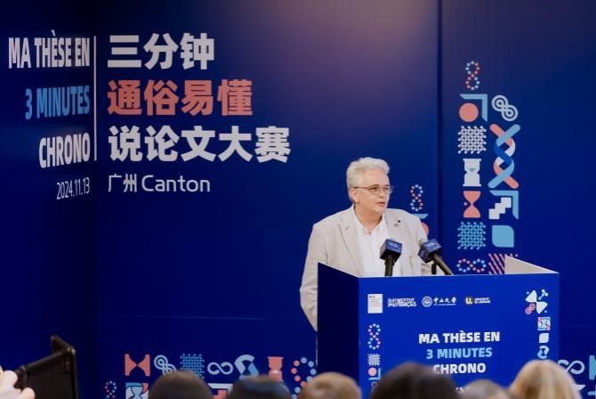 中大新聞網(wǎng)訊(通訊員王左 梁一川)2024年11月13日,由法國駐華大使館主辦、法國駐廣州總領(lǐng)事館和中山大學(xué)共同承辦的第二屆“三分鐘通俗易懂說論文”大賽總決賽在中山大學(xué)外國語學(xué)院成功舉行。來自國內(nèi)外8所高校的10位入圍博士生同臺(tái)競(jìng)技、盡展風(fēng)采?,F(xiàn)場(chǎng)近200名觀眾和13000位線上觀眾共同觀看了本次比賽。