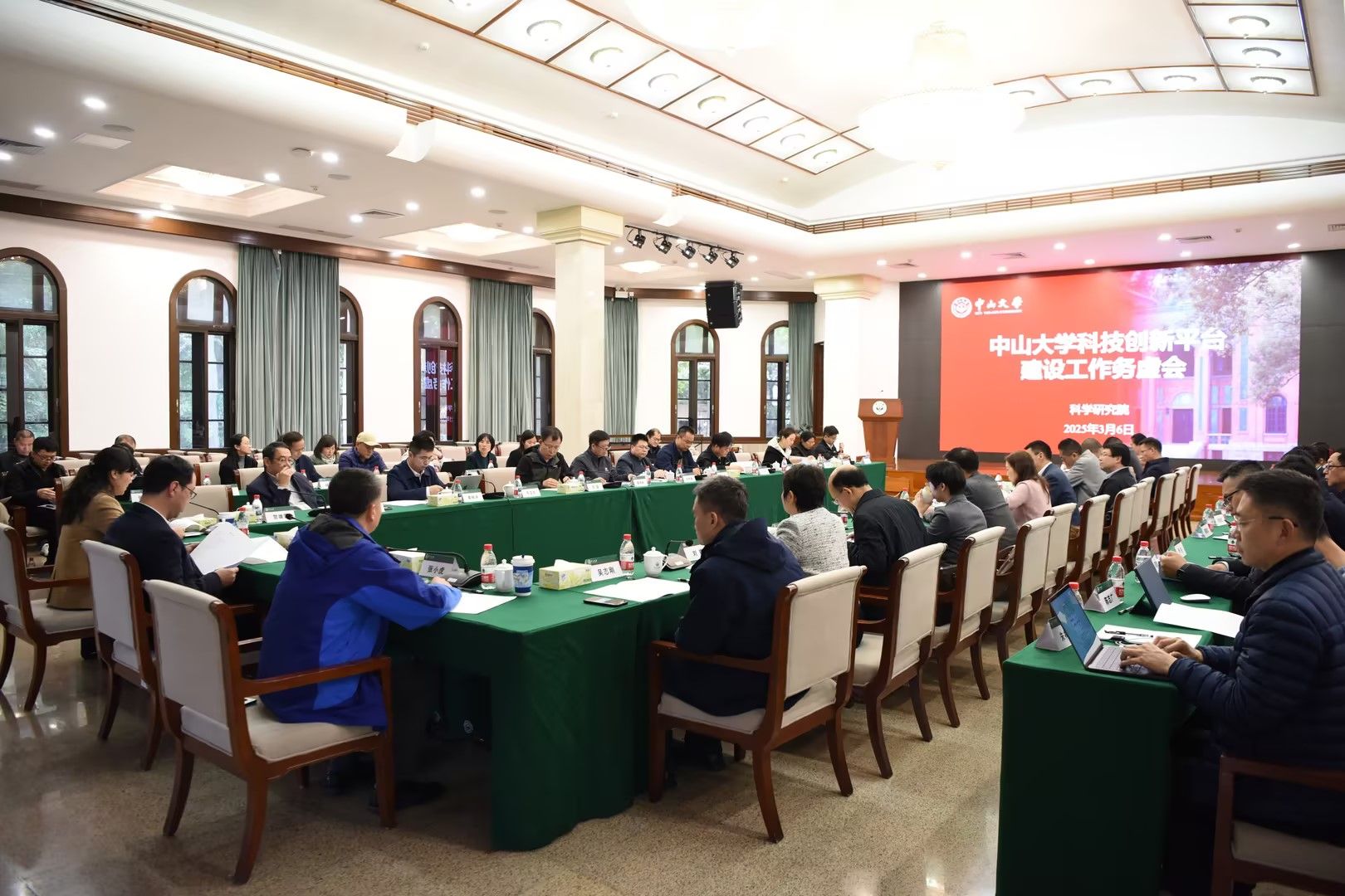 會上,科學研究院基地處處長張莉恒作學校科技創新平臺工作報告。大氣科學學院、孫逸仙紀念醫院、國家數字家庭工程技術研究中心、臨床免疫學前沿交叉中心、廣東省智能交通系統重點實驗室、中山大學碳中和技術研究院等6個院系或平臺的代表依次匯報本單位科研平臺建設情況,并提出相關工作建議和意見。