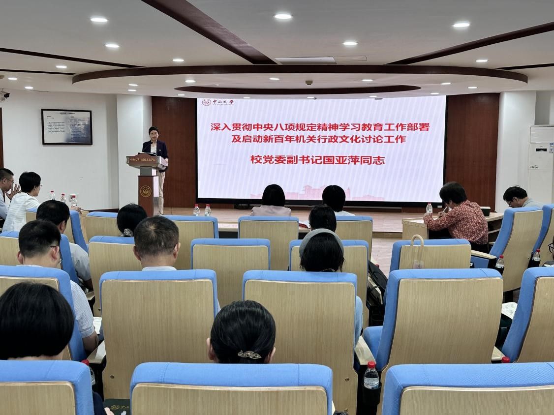 中大新聞網訊(記者余婷)4月25日下午,中山大學召開深入貫徹中央八項規定精神學習教育第三次工作推進會,會議面向機關部處、二級黨組織分別開展。會上,通報了學校學習教育近期工作進展及問題查擺情況,并根據教育部最新要求,分別部署了機關部處和二級黨組織層面查擺問題、整改整治方面的有關工作。校學習教育工作專班組長、黨委副書記國亞萍主持會議。