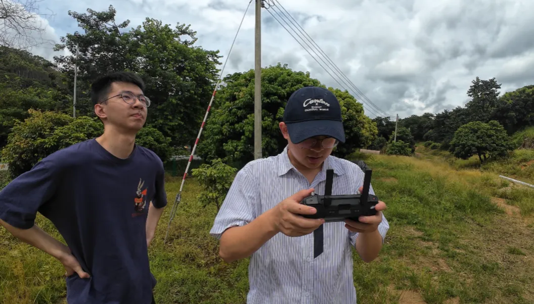 團隊成員朱方杰、傅浩使用無人機幫助果園信息化