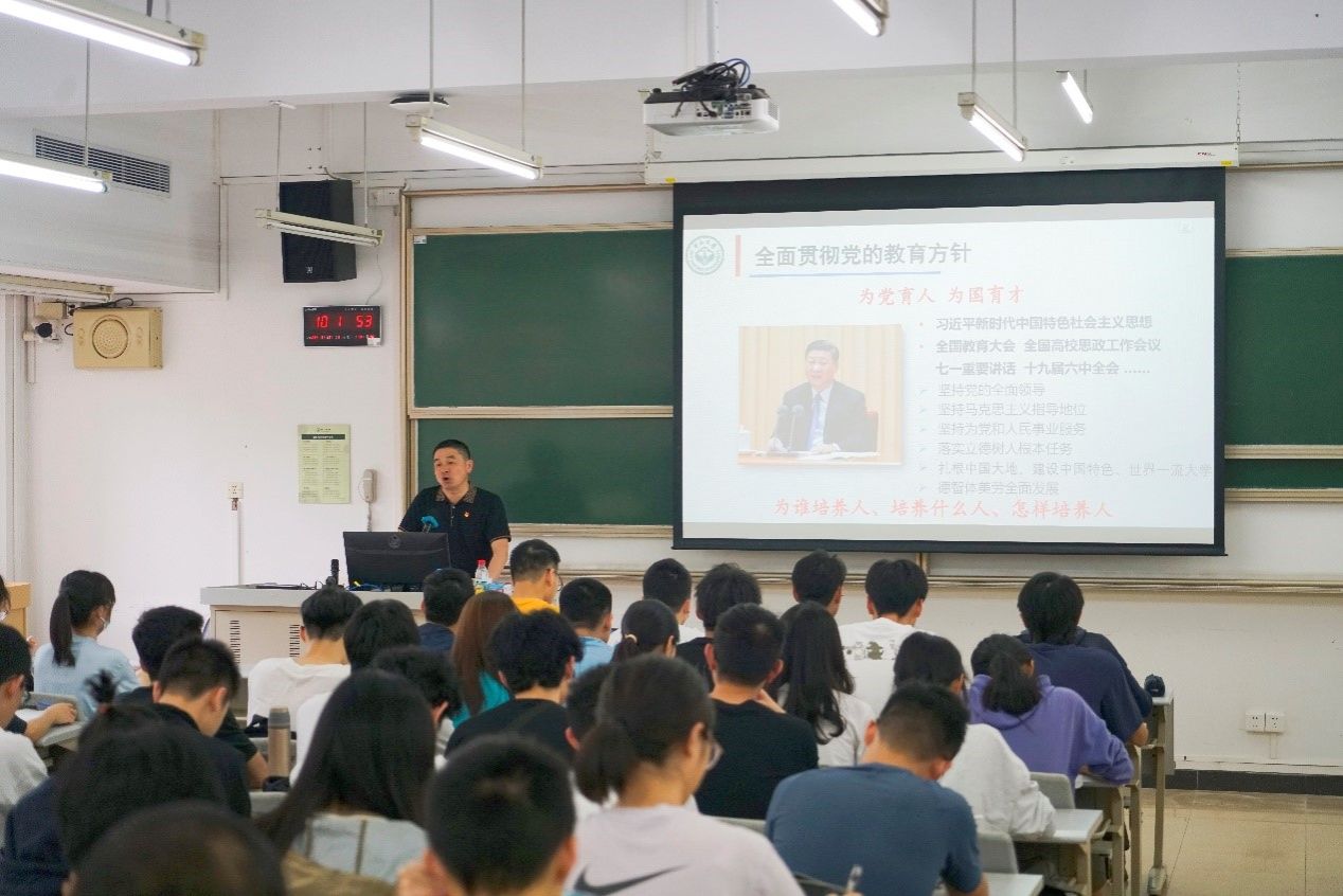 劉濟(jì)科副校長(zhǎng)向同學(xué)們講授黨的教育方針,要“為黨育人、為國(guó)育才”。全面貫徹黨的教育方針,就是要以習(xí)近平新時(shí)代中國(guó)特色社會(huì)主義思想為指導(dǎo),貫徹黨的十九大和十九屆歷次全會(huì)精神,貫徹落實(shí)習(xí)近平總書(shū)記關(guān)于教育的重要論述及全國(guó)教育大會(huì)精神,堅(jiān)持黨對(duì)教育事業(yè)的全面領(lǐng)導(dǎo),堅(jiān)持馬克思主義指導(dǎo)地位,堅(jiān)持為黨和人民事業(yè)服務(wù),堅(jiān)持落實(shí)立德樹(shù)人根本任務(wù),扎根中國(guó)大地,建設(shè)中國(guó)特色、世界一流大學(xué),培養(yǎng)德智體美勞全面發(fā)展的社會(huì)主義建設(shè)者和接班人。