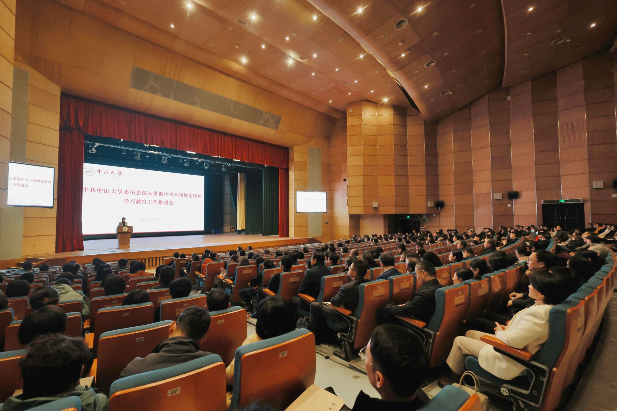 中大新聞網(wǎng)訊(記者張妍)3月31日下午,中山大學(xué)在廣州校區(qū)南校園梁銶琚堂召開深入貫徹中央八項規(guī)定精神學(xué)習(xí)教育工作推進會,傳達(dá)學(xué)習(xí)上級有關(guān)文件,通報學(xué)習(xí)教育工作進展,對下一階段工作作出安排。會議由學(xué)校黨委副書記國亞萍主持。